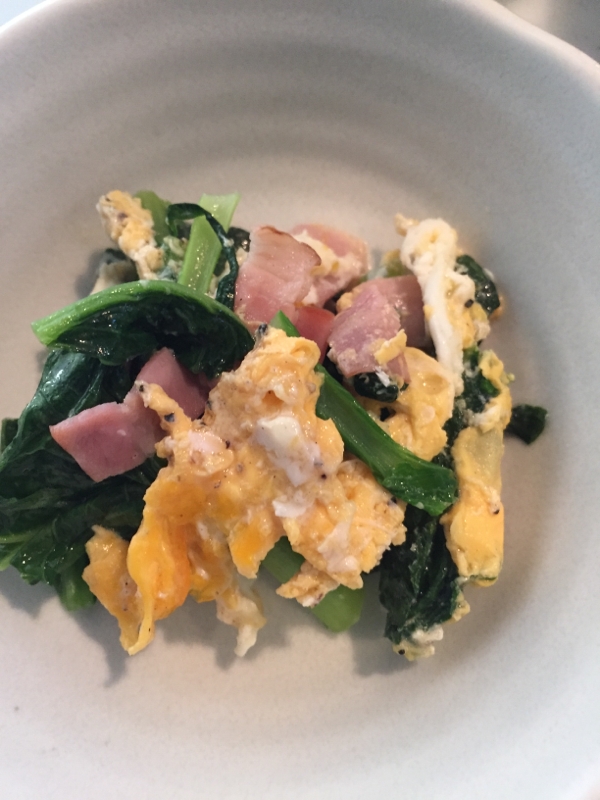 簡単 小松菜 ベーコン 卵の炒め物 レシピ 作り方 By ゆうたんママ クックパッド