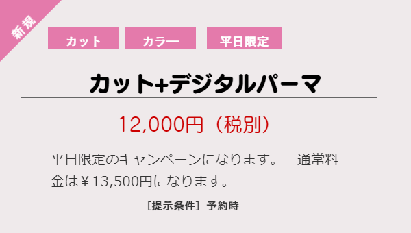 再来限定 web限定クーポン カット パーマ クーポン 麹町の美容室 ヘアサロン 美容院ならtaya 麹町店 千代田区 麹町駅徒歩3分